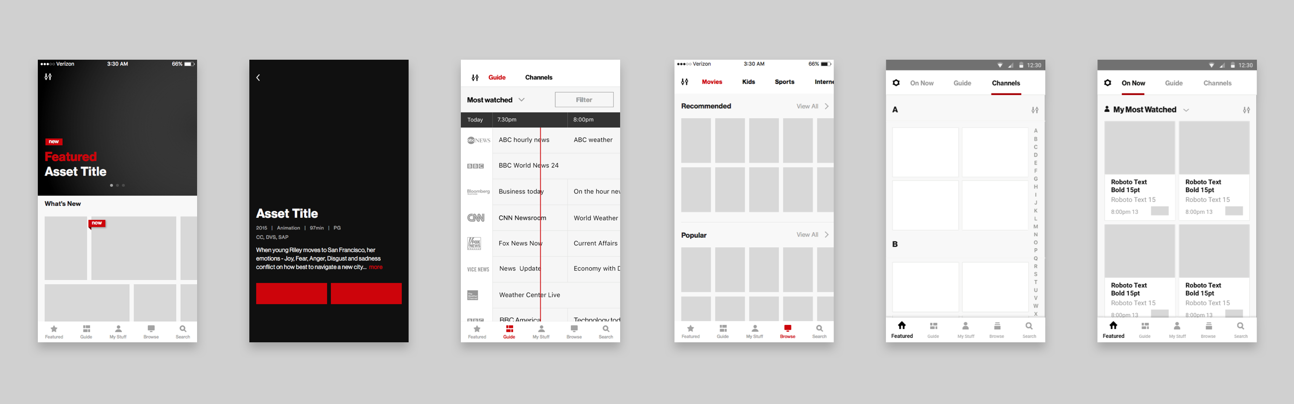Upon completion of IPTV , I transitioned to reimagine our legacy product, FIOS Mobile. This product had been on the market for 10 years and had accumulated an immense amount of bells, whistles, and visual clutter. The Design team and I began an inventory of both the mobile and Set Top Box applications.