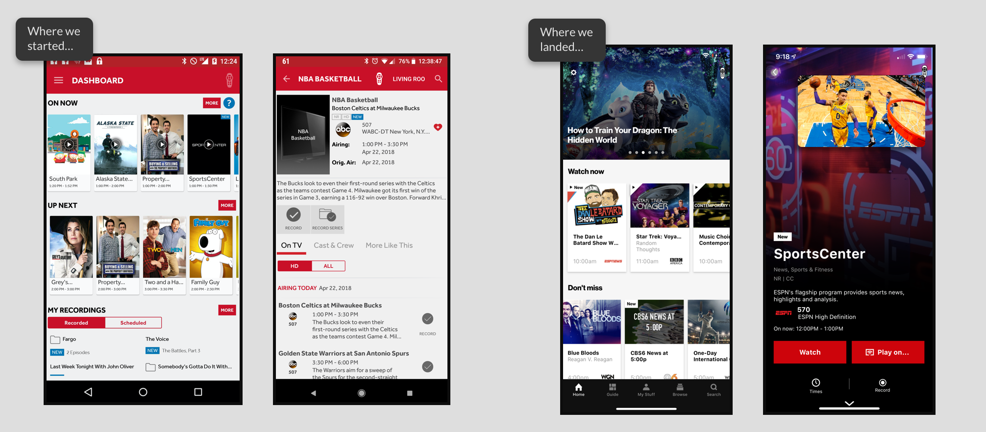 Testing started on day one since we had the initial product to get feedback on. This continued throughout the project. Since we had the visual language from IPTV, we were able to iterate quickly, prototype with engineering, and get feedback without disrupting the cadence.